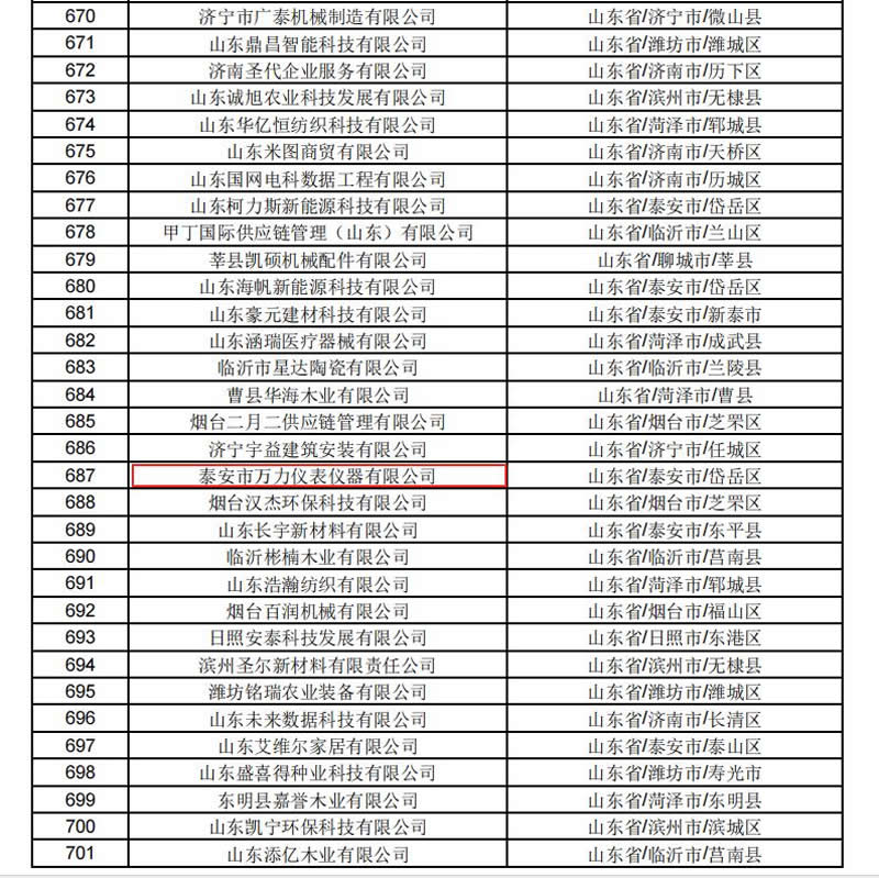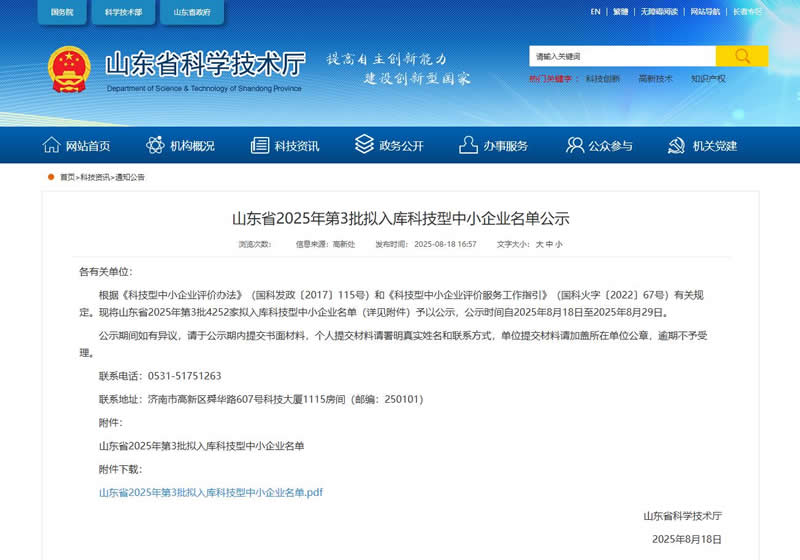 2025年8月18日,从山东省科学技术厅传来好消息,经省科技厅审核,万力仪表公司成功入选山东省 2025年第3批拟入库科技型中小企业名单。这不仅是对我公司在技术创新领域的认可,更是对公司持续深耕智慧计量产业的高度肯定。